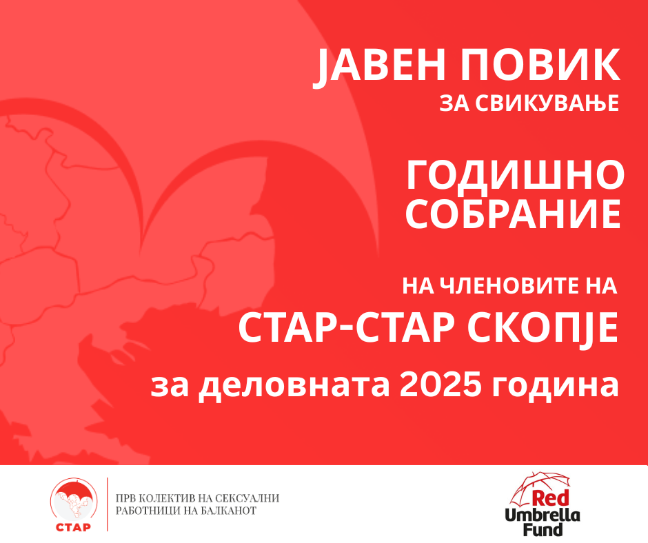 Здружението за поддршка на маргинализирани работници СТАР-СТАР Скопје е основано во 2010 година и претставува прв и единствен облик на самоорганизирање на заедницата на сексуални работници во Република Северна Македонија и на Балканот. Препознаени како СТАР – Прв колектив на сексуални работници на Балканот, повеќе од 10 години СТАР-СТАР се залага за застапување и промовирање на правата на сексуалните работници во социјалниот, здравствениот и правниот систем на државата.
