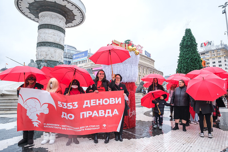 Во рамки на овогодинешната кампања, по повод одбележувањето на 17-ти декември, Меѓународниот ден за стоп на насилството врз сексуалните работници, СТАР- Првиот колектив на сексуални работници на Балканот, заедно со ХОПС – Опции за здрав живот Скопје, и со нашите поддржувачи и активисти по 16-ти пат марширавме со црвени чадори во центарот на Скопје, и одбележавме 5353 денови до правда – кампања посветена на конечната правда за сексуалните работници по пресудата на Европскиот суд за човекови права Д.Х. и други против Северна Македонија.