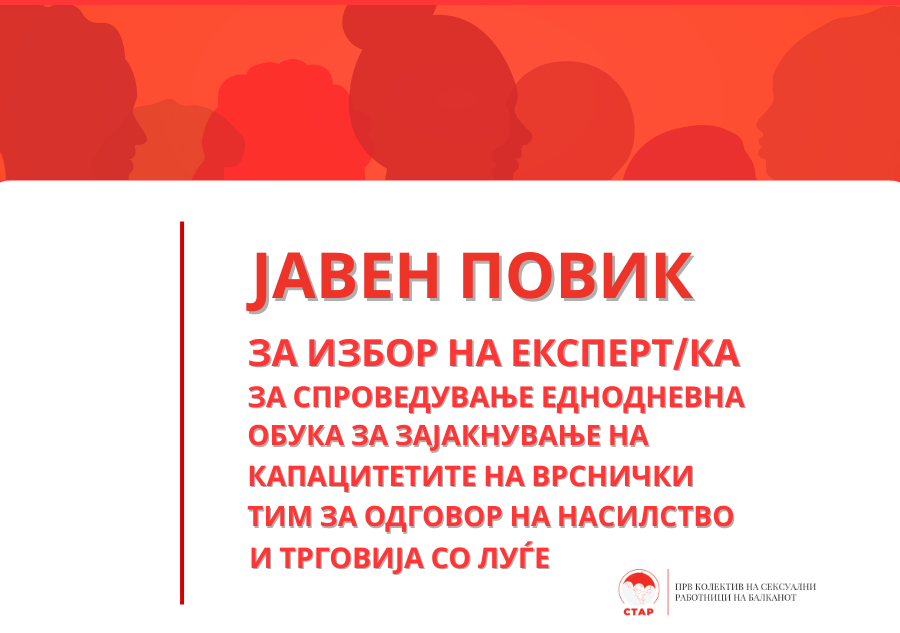1. Објавувач на повикот Здружението за поддршка на маргинализирани работници СТАР-СТАР Скопје на ден 19.09.2025 година објавува Јавен повик за избор на експерт/ка за спроведување еднодневна обука за зајакнување на капацитетите на врснички тим за…