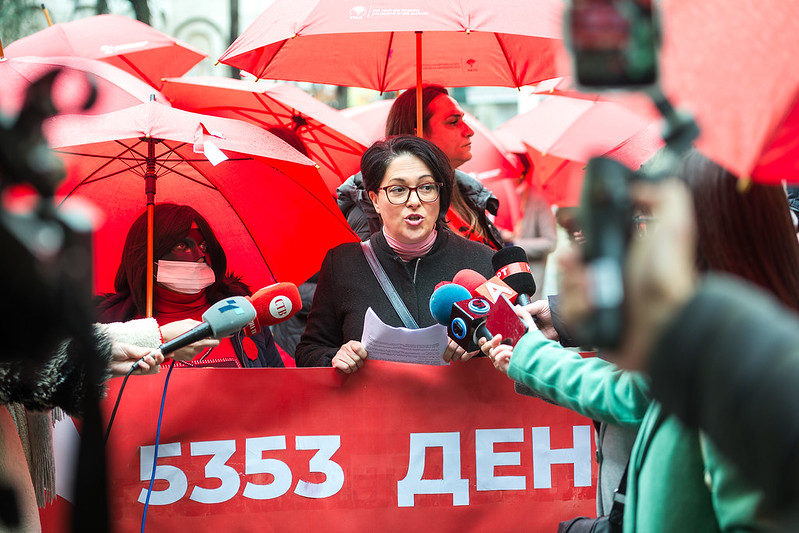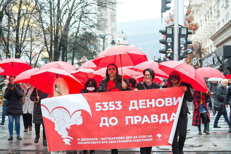 Within this year’s campaign, on the occasion of marking the 17th of December – the International Day to Stop Violence against Sex Workers, STAR – The First Sex Workers Collective in the Balkans, together with HOPS – Healthy options project Skopje, and with our supporters and activists for the 16th time marched with red umbrellas in the center of Skopje, and marked 5353 Days to Justice – a campaign dedicated to the ultimate justice for sex workers following the European Court for Human Rights’ ruling on D.H. and Others vs. North Macedonia.