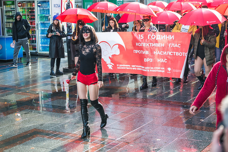 As part of this year’s campaign marking December 17th – the International Day to Stop Violence Against Sex Workers, we, sex workers united in STAR – the first sex workers collective in the Balkans, alongside with our partners HOPS – Healthy options project Skopje, TransFormA and the Coalition Margins, supporters and activists, celebrated an important anniversary the 15-year Red Umbrella March jubilee by the slogan 15-YEAR COLLECTIVE VOICE AGAINST VIOLENCE ON US.