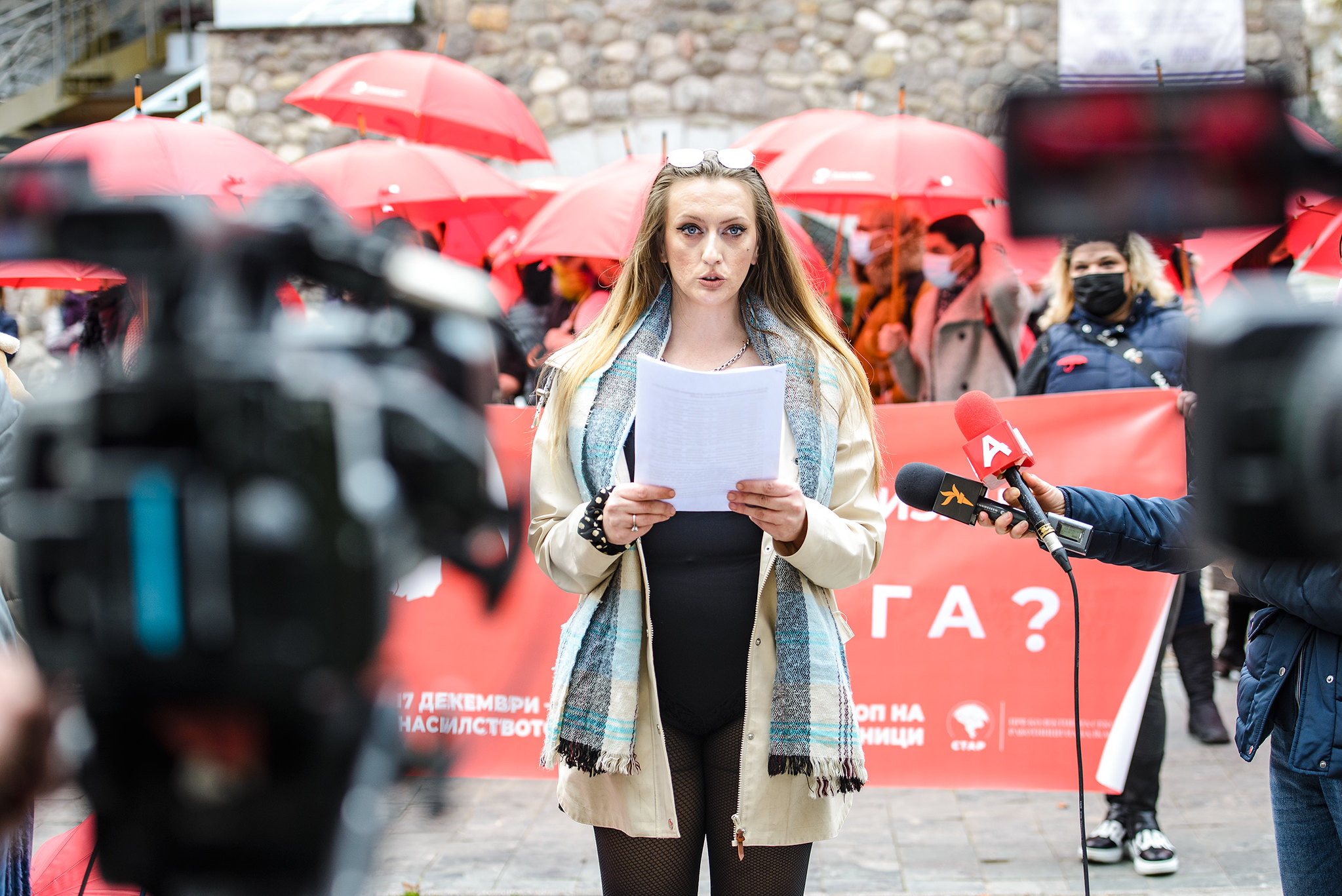 Within this year’s campaign, marking 17th December – The International Day to Stop Violence against Sex Workers, we, sex workers, united in STAR – The First Sex Workers Collective in the Balkans, in cooperation with HOPS – Healthy options project Skopje and Coalition MARGINS, have organized the 14th Red Umbrella March in Skopje. Around 100 participants, sex workers, activists and our supporters marched from the Memorial House of Mother Teresa to the square of Philip II, joining the global campaign for solidarity with sex workers. Before the start of the Red Umbrella March, a representative of our community gave a press statement in front of the media, sending a message to the general public and institutions that we sex workers are part of the society and we should equally enjoy the human and labor rights as others: