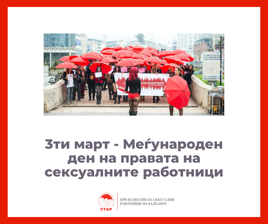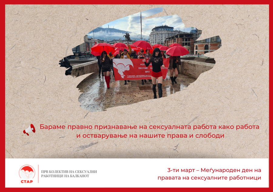 3-ти март – Меѓународен ден на правата на сексуалните работници: Бараме правно признавање на сексуалната работа како работа и остварување на нашите права и слободи