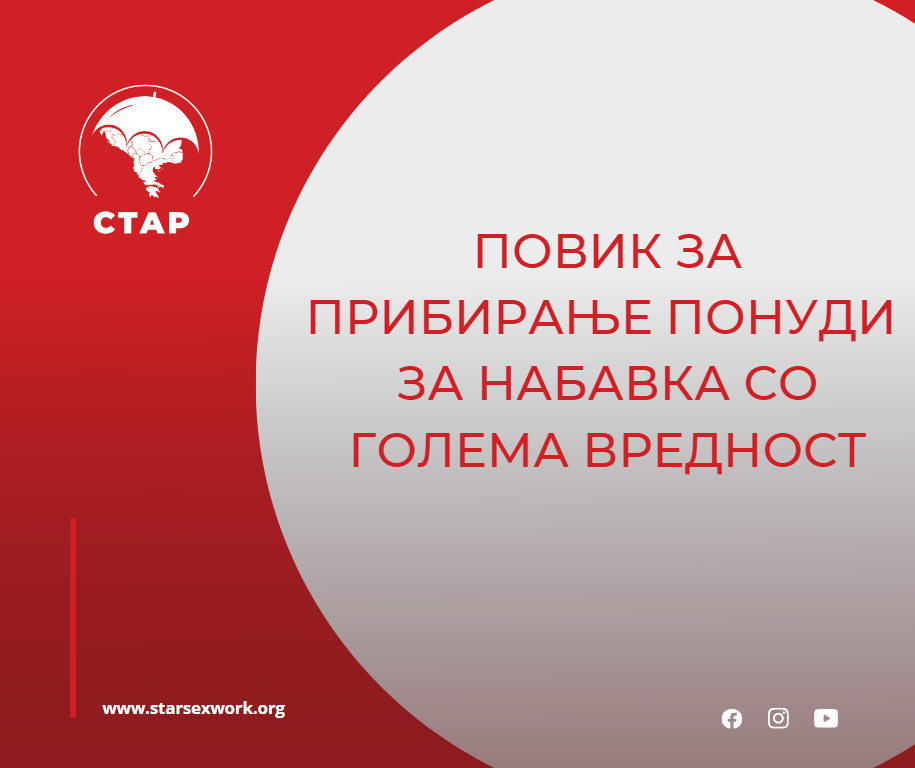 Здружението за поддршка на маргинализирани работници СТАР-СТАР Скопје на ден 25.09.2023 година, објавува Јавен повик за избор на експерт за развој на извештај за политики за носителите на одлуки во врска со зајакнувањето на родовата…