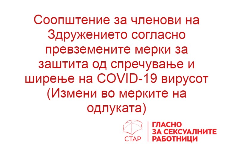 Соопштение за членови на Здружението согласно превземените мерки за заштита од спречување и ширење на COVID-19 вирусот (Измени во мерките на одлуката)